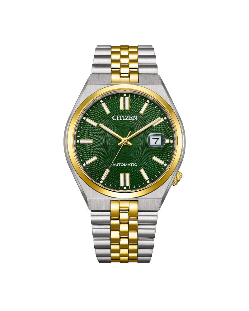 Citizen Tsuyosa 60 Automatic er et mesterverk av presisjon, eleganse og innovasjon. Denne klokken representerer en ny æra for Citizen sin populære Tsuyosa-serie, nå oppgradert med et forbedret, egenutviklet automatisk urverk – kaliber 8310 – som leverer en imponerende gangreserve på hele 60 timer. Den grønne urskiven reflekterer lyset vakkert, og gir klokken et eksklusivt preg som skiller seg ut både på jobb og i fritid.