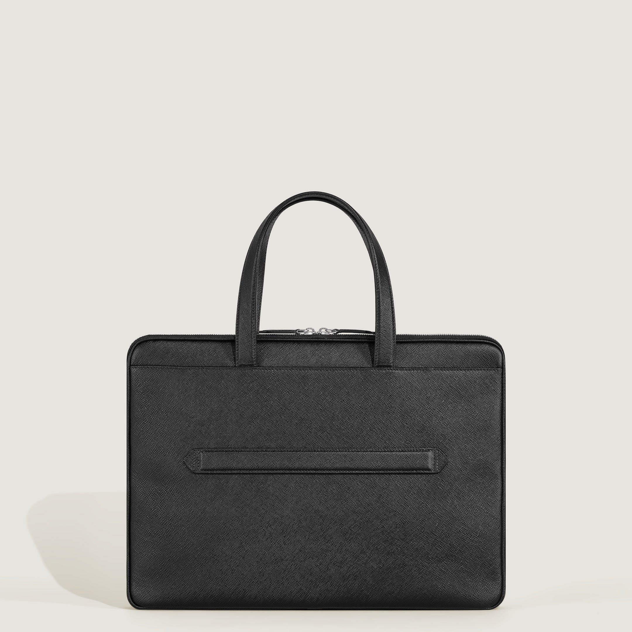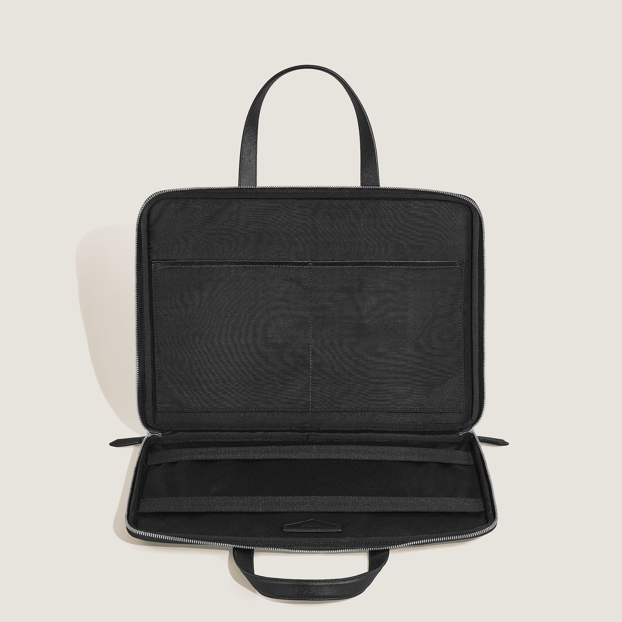 Den 360° glidelås-åpningen gir enkel tilgang, mens to hovedrom, en stropp til laptop, to åpne lommer og to holdere for skriveinstrumenter sørger for praktisk organisering. Vesken er også utstyrt med et satelittsystem for enkel festing til trillekoffert – ideell for deg som kombinerer arbeid og reise med stil.
