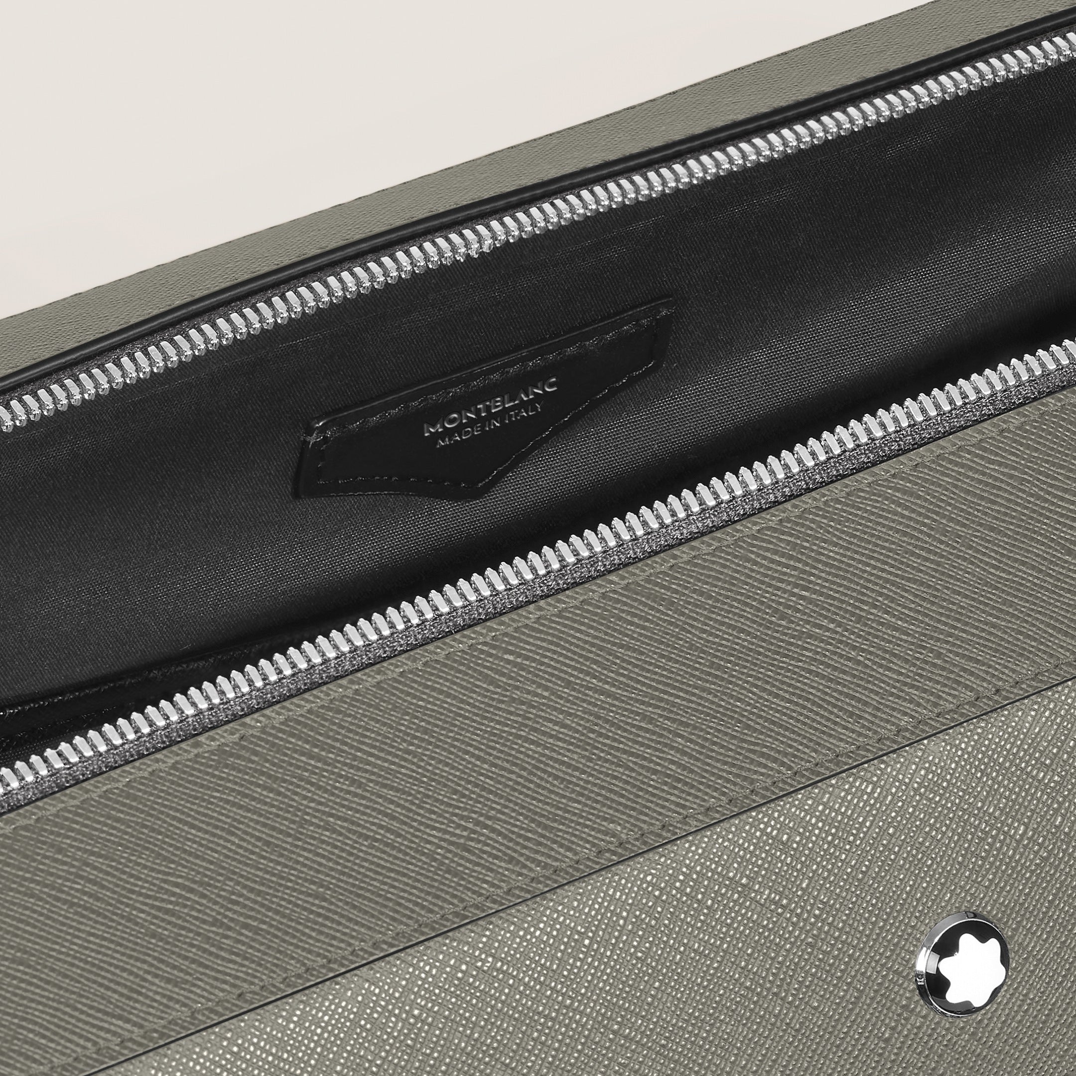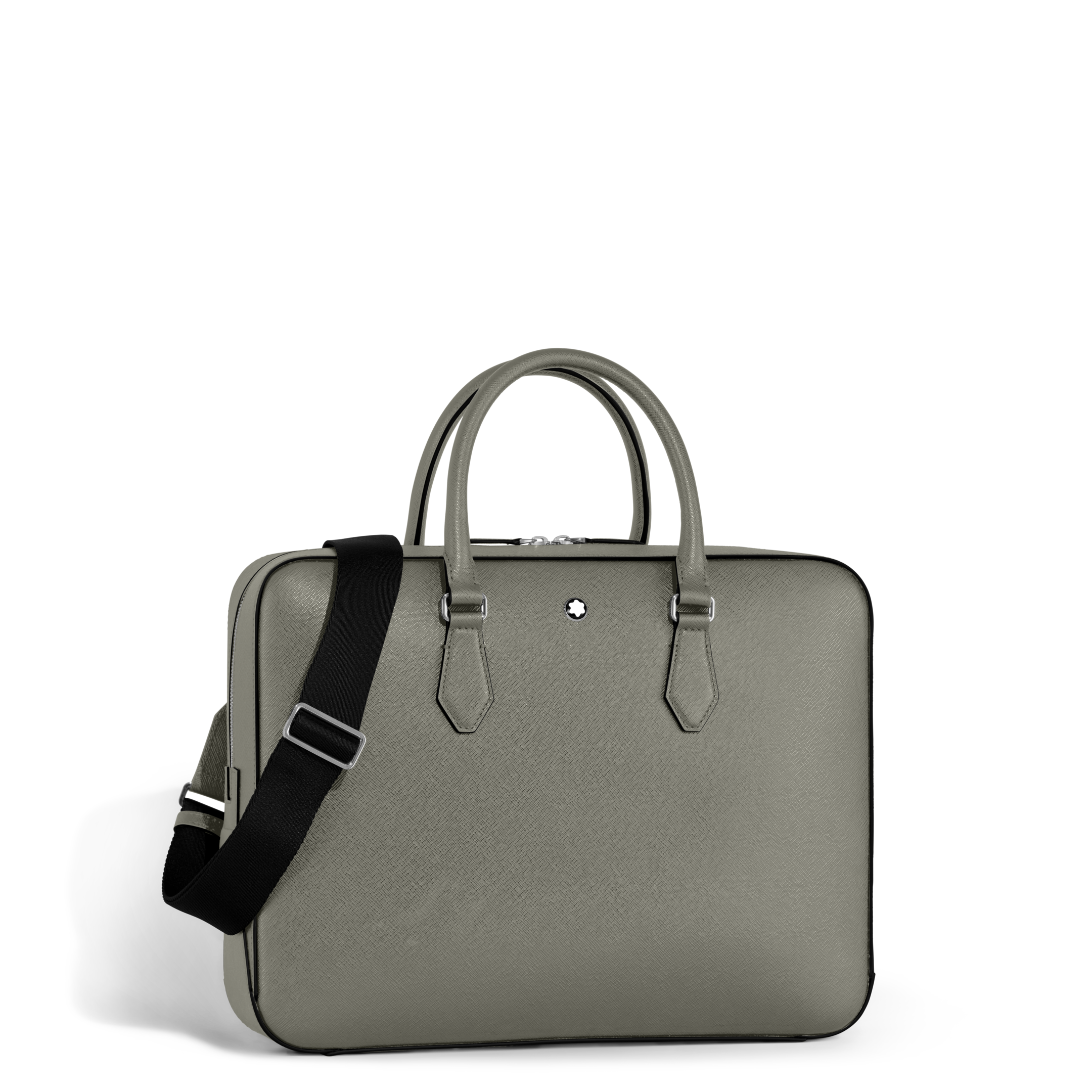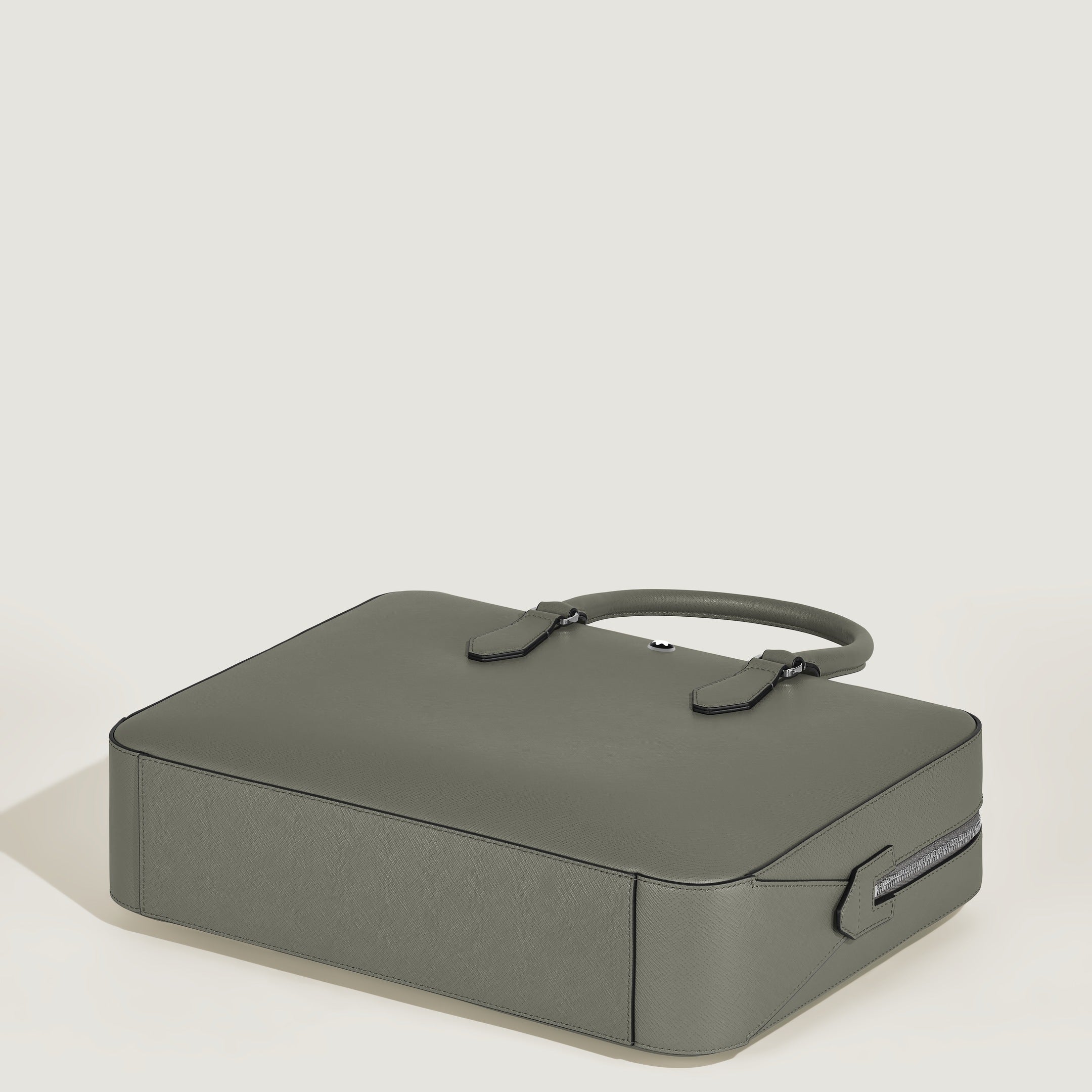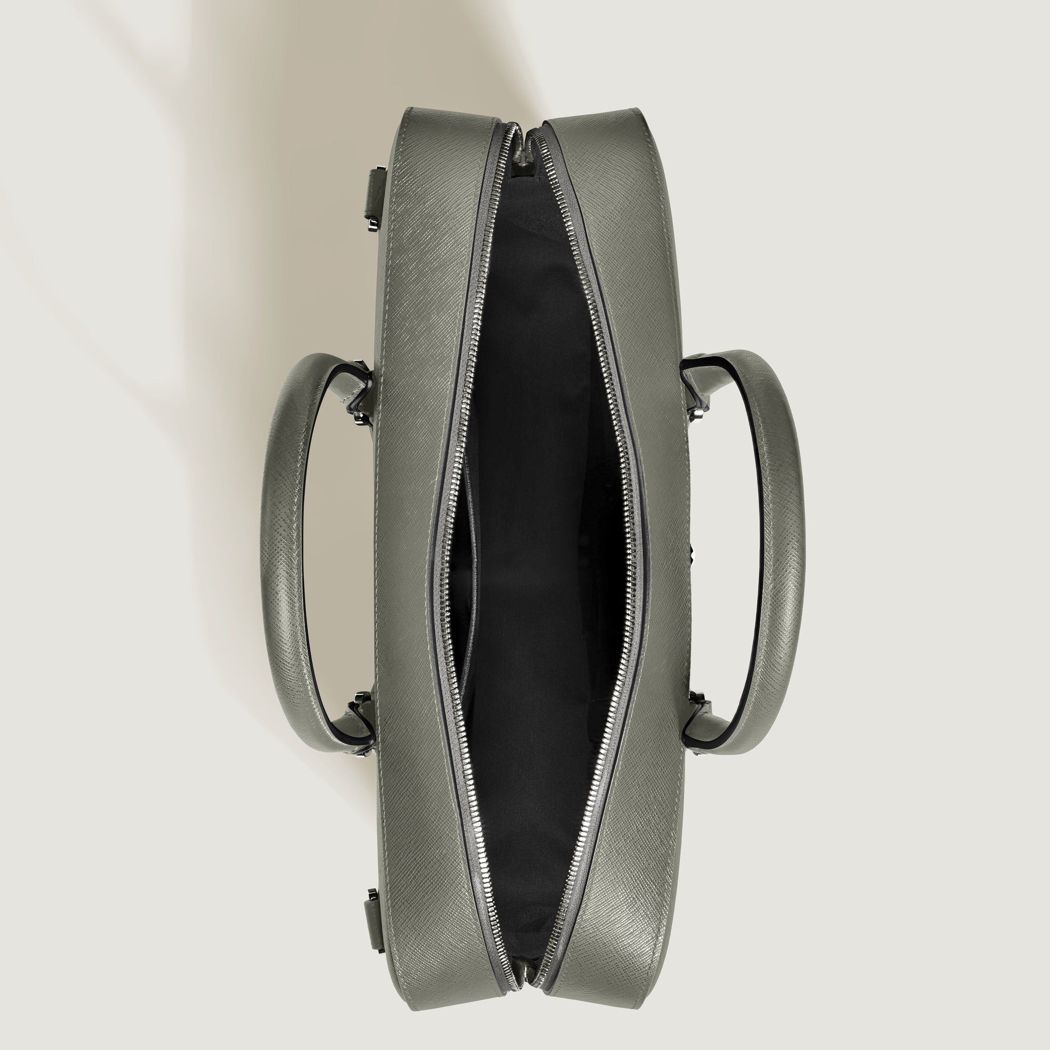Elegant og funksjonell dokumentveske fra Sartorial-kolleksjonen, laget av Saffiano-preget fullnarvet kuskinn i mellomgrå nyanse. Vesken har et romslig hovedrom med plass til A4-dokumenter, elektroniske enheter og andre nødvendigheter til arbeidsdagen. Innvendig finnes dedikerte lommer til skriveinstrumenter, og det modulære designet gjør det mulig å feste vesken til andre produkter fra Sartorial-serien. Den luksuriøse teksturen og den sofistikerte fargen gir et tidløst og profesjonelt uttrykk.