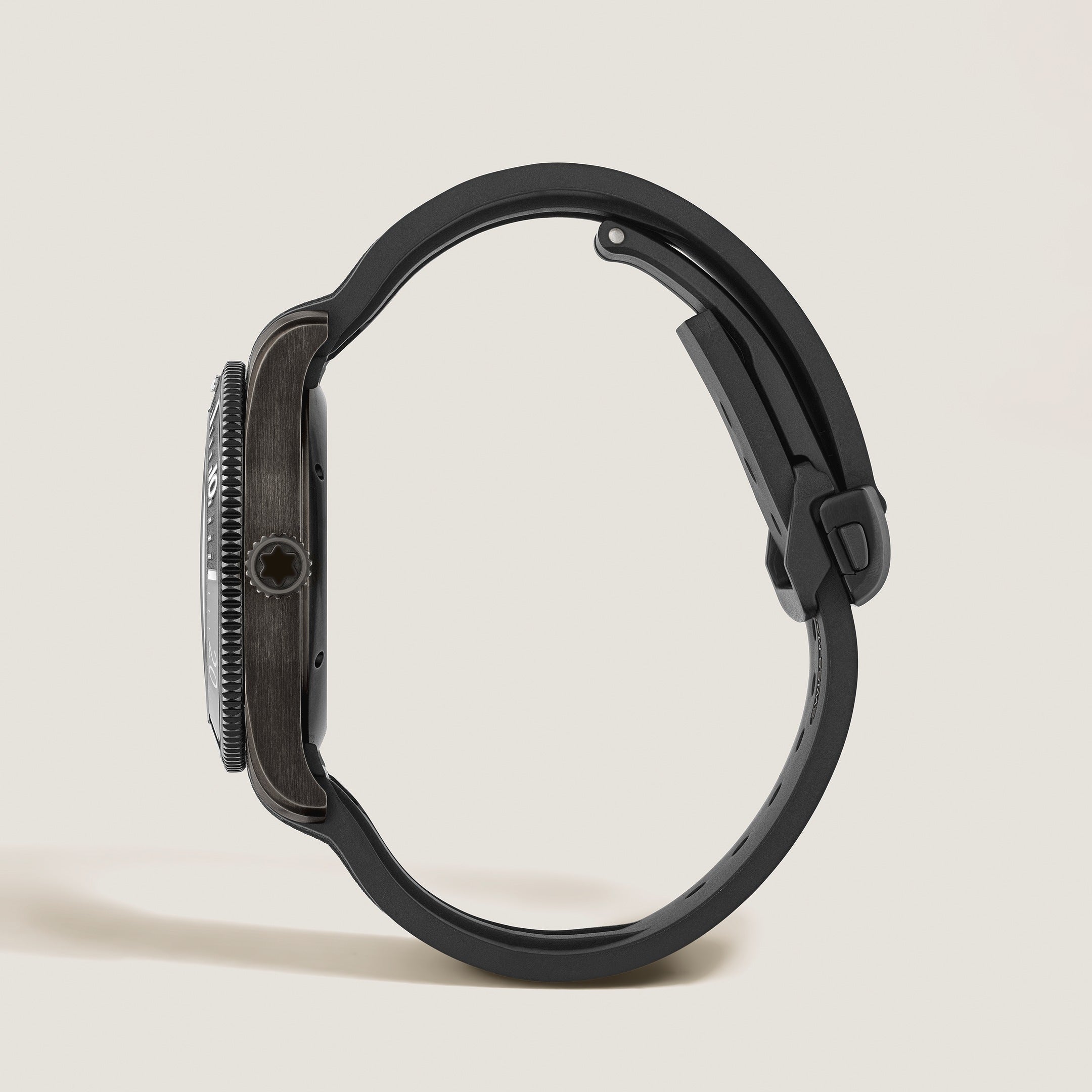 • Krone: Skrudd og rillet, med Montblanc-emblem i relieff