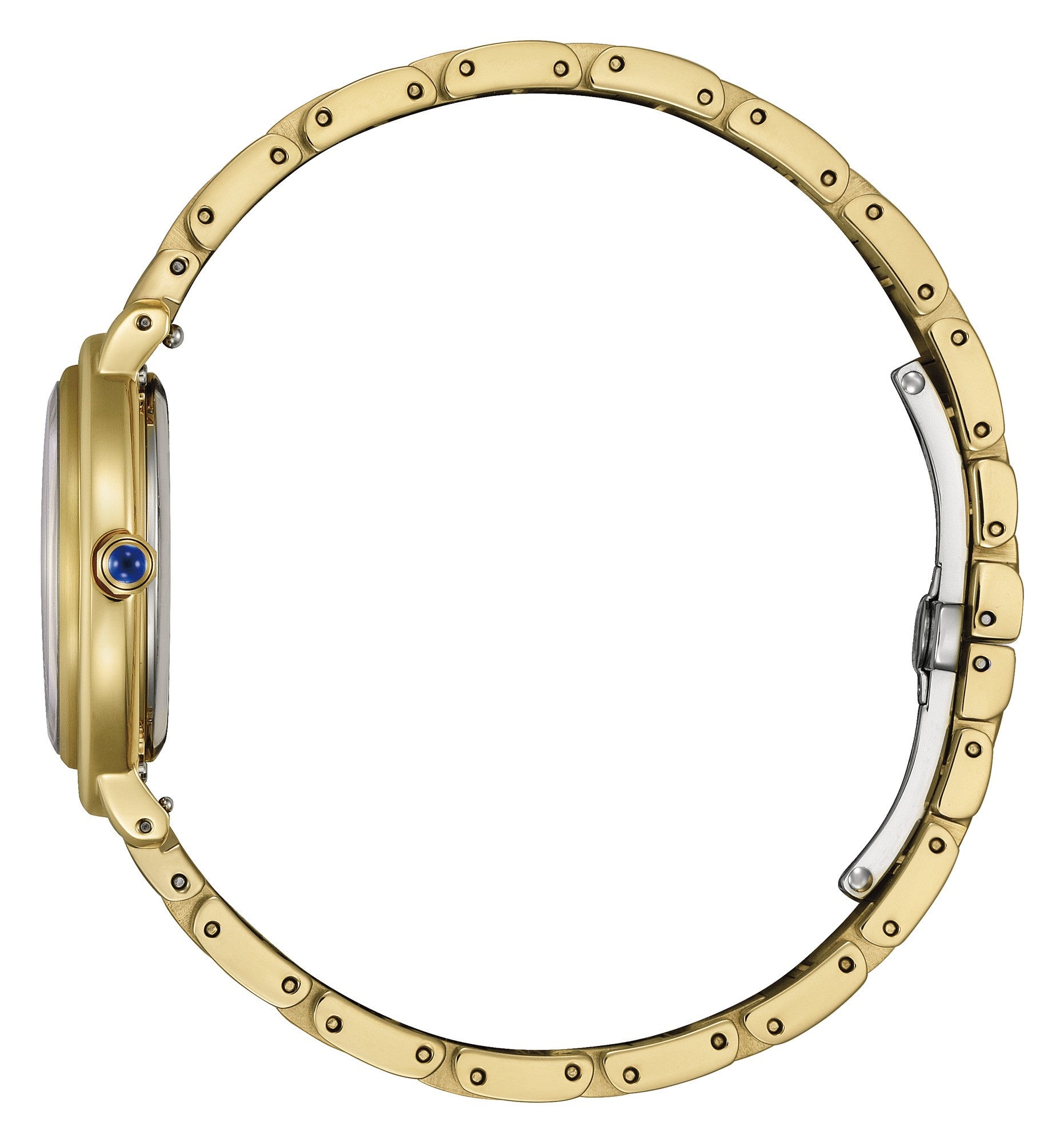 Citizen L Eco-Drive Limited Edition EM1099-57L kombinerer tidløs eleganse med avansert teknologi. Denne eksklusive modellen, produsert i kun 2 000 eksemplarer, har en forgylt urkasse i rustfritt stål med en diameter på 31 mm og en høyde på 7,83 mm. Den dype blå urskiven prydes av tre diamanter og beskyttes av ripesikkert safirglass.