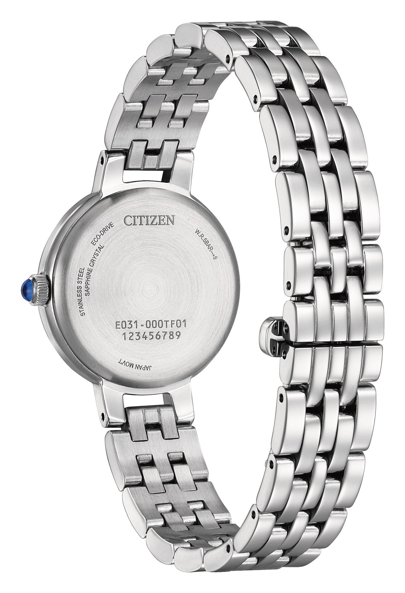 Med Eco-Drive-teknologi lades klokken av både naturlig og kunstig lys, så du slipper batteribytte. Fullt oppladet har den en gangreserve på ca. 6 måneder. Safirglass beskytter mot riper, og vannbestandighet på 5 bar gjør den motstandsdyktig mot sprut og kortvarig neddykking.