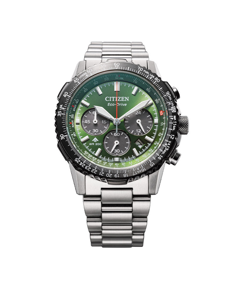 Denne kronografmodellen er utstyrt med Citizens anerkjente Eco-Drive teknologi, som drives av solenergi og har en gangreserve på 9 måneder når det er fulladet. Den robuste stålkassen og lenken gir et tidløst uttrykk og matcher den grønne skiven perfekt.