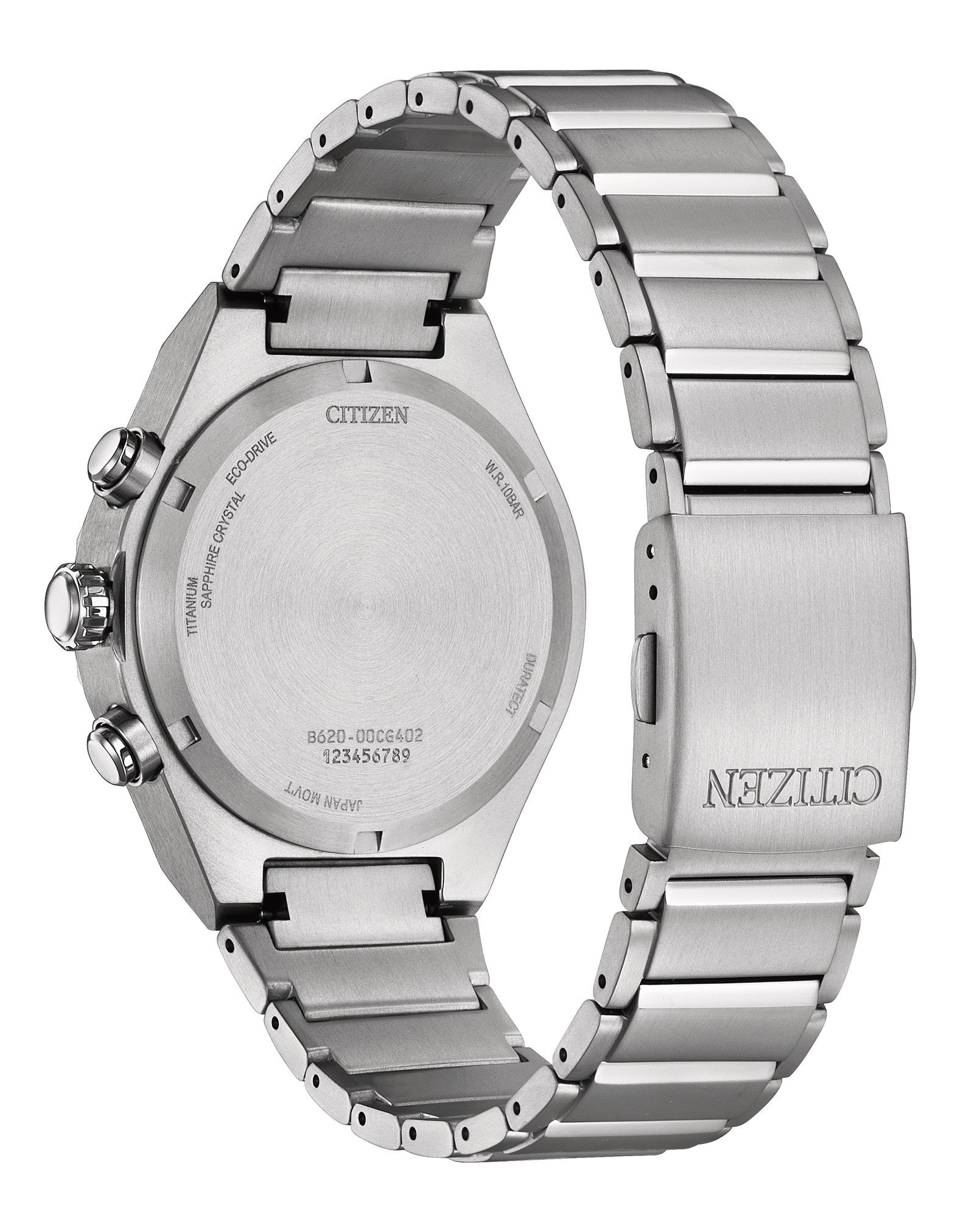 Urverket er det solcelledrevne Eco-Drive kaliber B620 med en gangreserve på opptil 270 dager når fulladet og en nøyaktighet på +/- 15 sekunder per måned. I tillegg tilbyr modellen datovisning, 24-timers display, batteriutladningsindikator og kronograf med måling ned til 1/5 sekund og opptil 60 minutter. Vannbestandigheten er 10 ATM, og lenken har sikkerhetsfoldespenne.