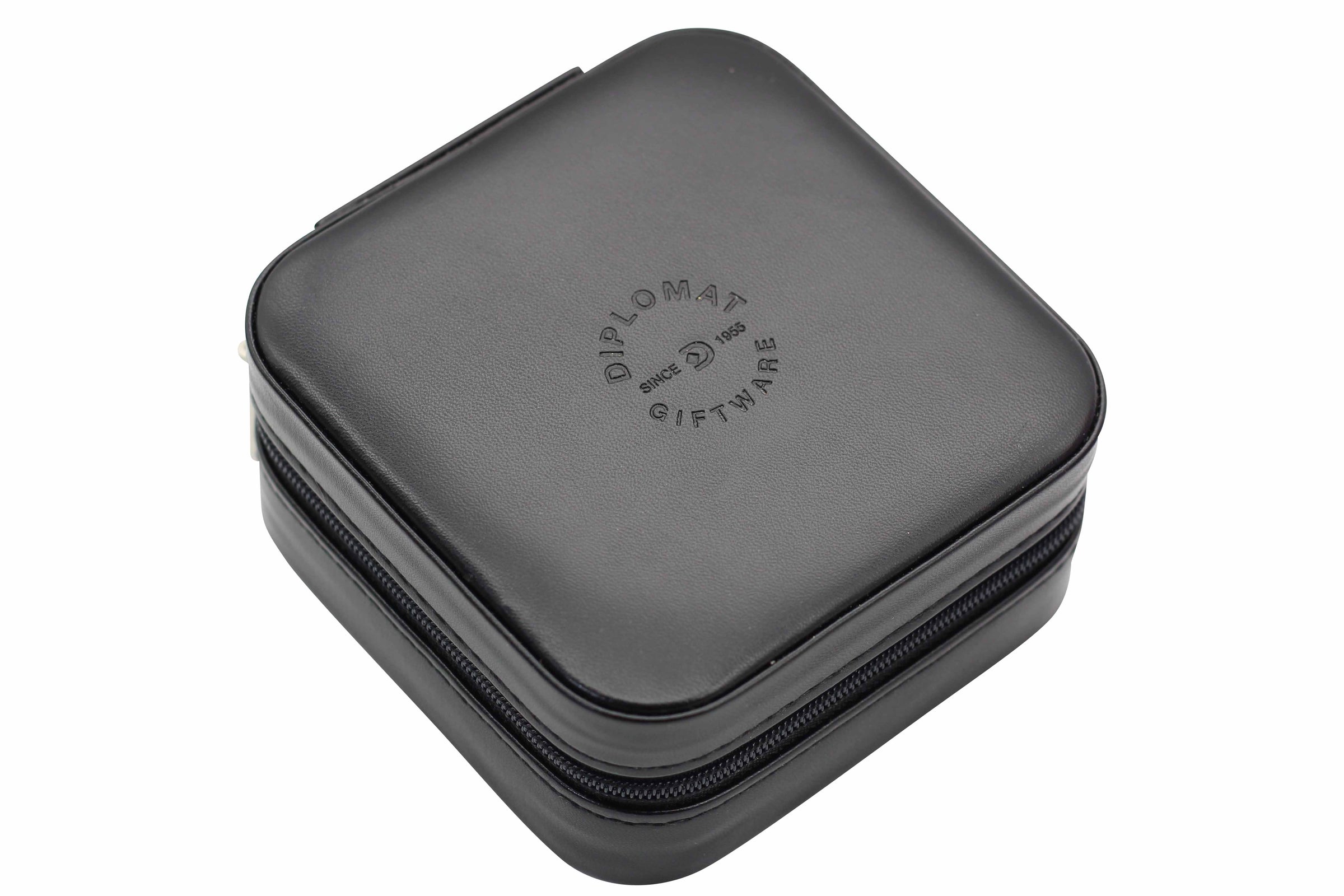 Praktisk og kompakt reisesmykkeskrin fra Diplomat, perfekt for alle som ønsker sikker og oversiktlig oppbevaring av smykker på reise. Hvert smykkeskrin har størrelse 95 x 95 x 46 mm, og er laget for å beskytte smykker samtidig som det er enkelt å pakke med seg.