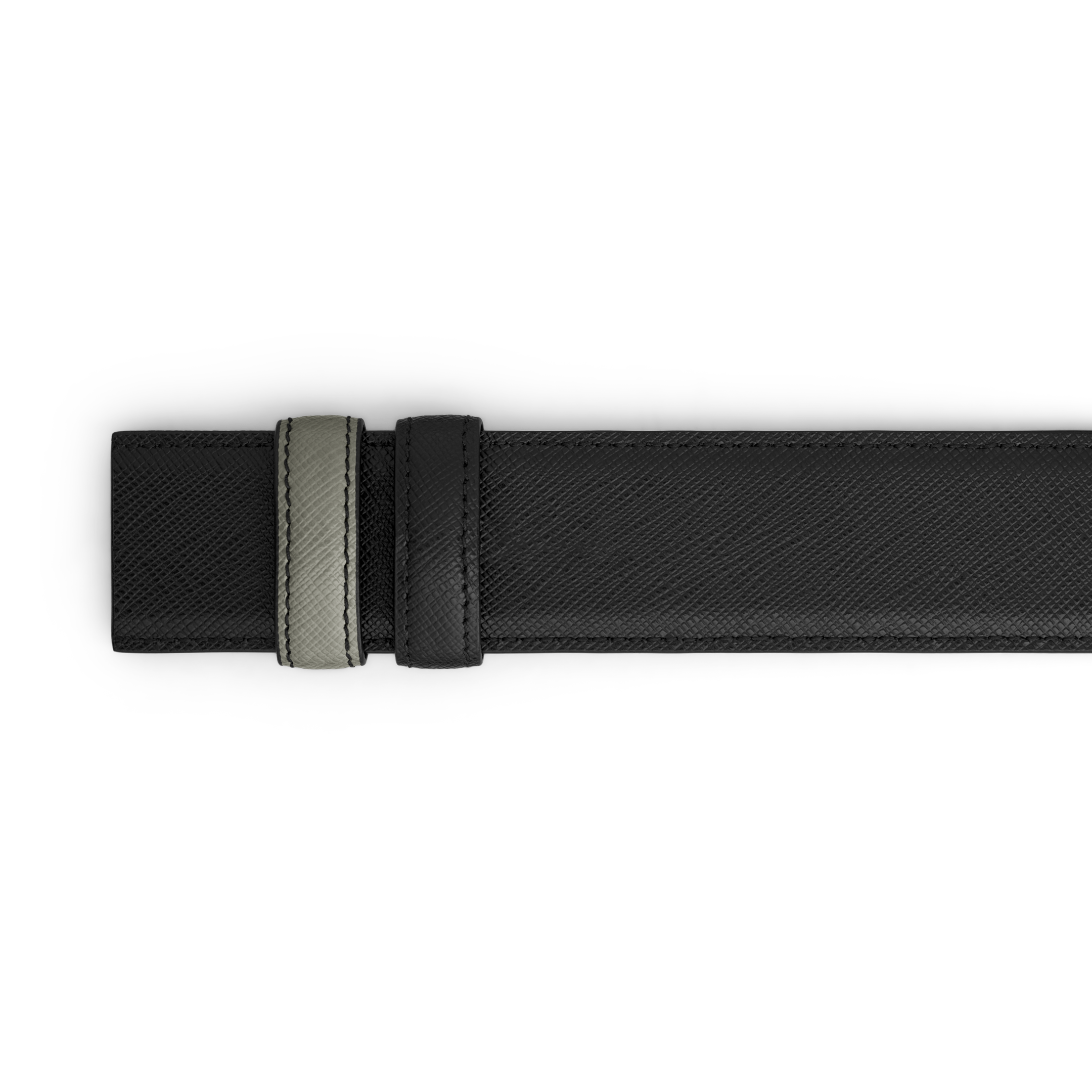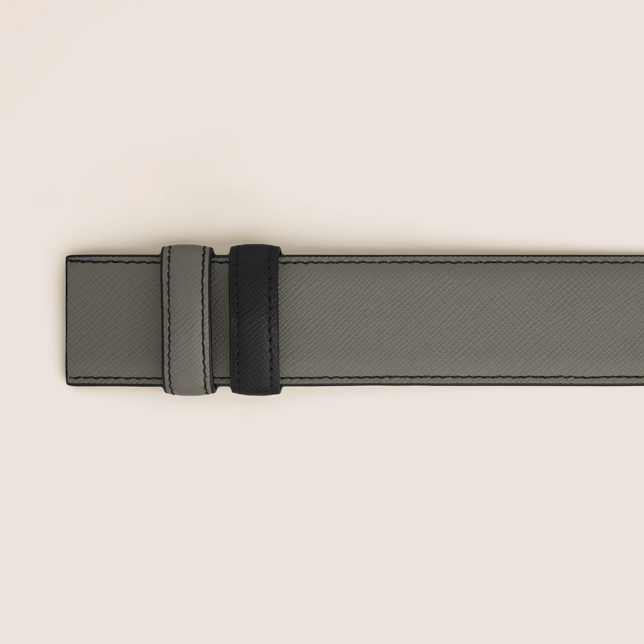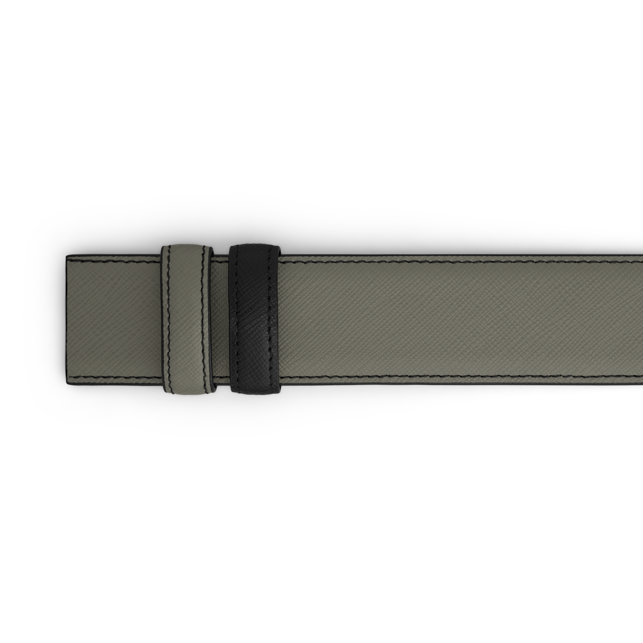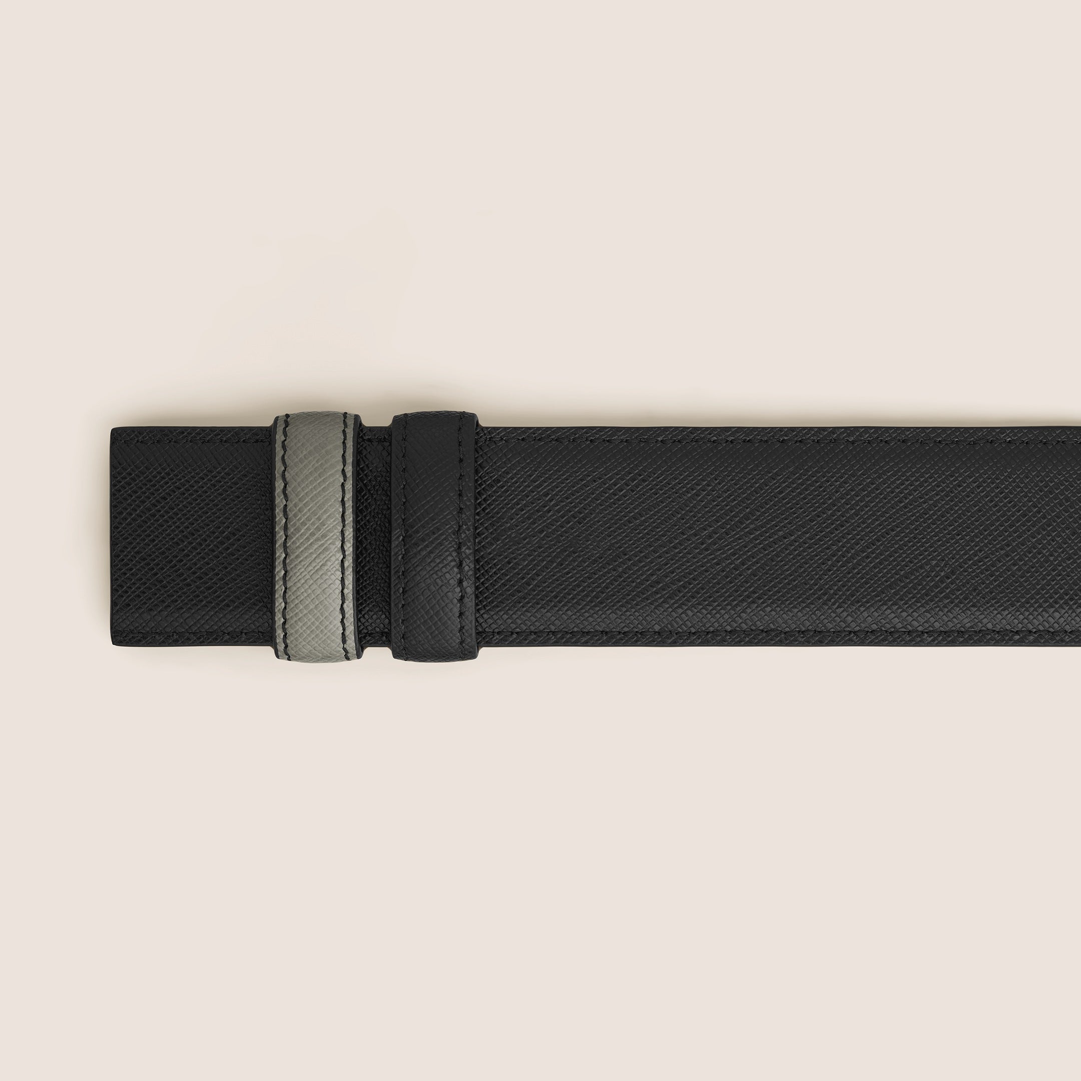 Vendbart belte fra Montblanc, laget av Saffiano-preget skinn i en raffinert kombinasjon av mellomgrått og svart. Beltet har et elegant palladiumbelagt spennefeste og kan enkelt vendes for å passe både formelle og avslappede antrekk.