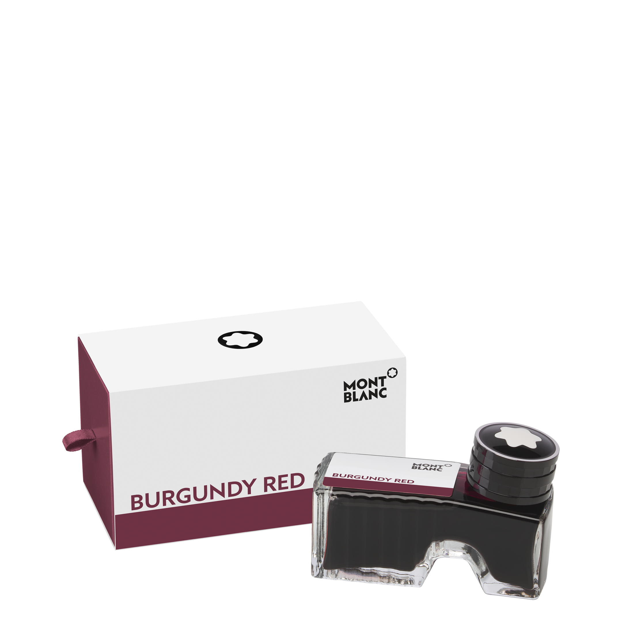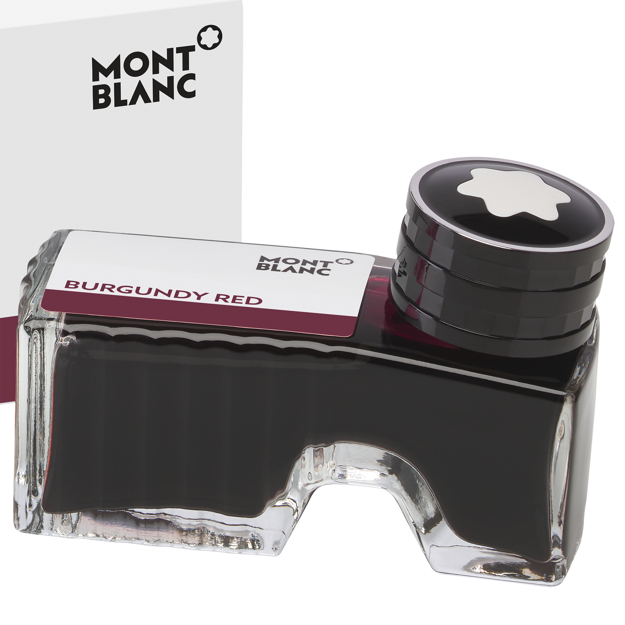 Montblanc blekkflaske i fargen Burgundy Red gir en dyp og elegant rødtone til håndskriften. Flasken er designet med et praktisk frontrom som gjør det enkelt å tømme ut blekkrester.