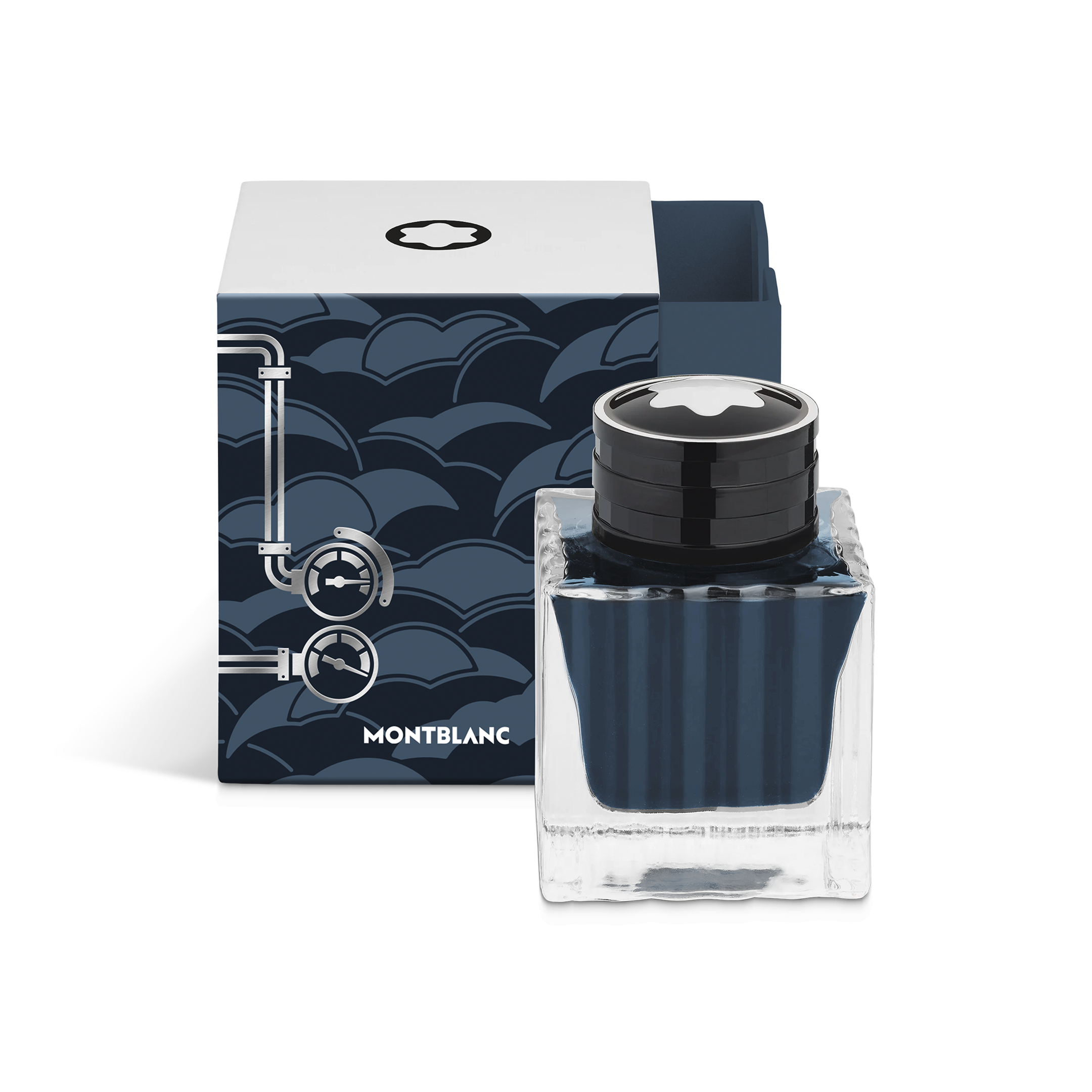 Montblanc Meisterstück Around the World in 80 Days blekkflaske i fargen Coal Blue er en Special Edition inspirert av Jules Vernes klassiske fortelling. Flasken leveres i kvadratisk emballasje som gjenspeiler kolleksjonens tema, og gjør den til en verdifull samlergave for Montblanc-entusiaster.