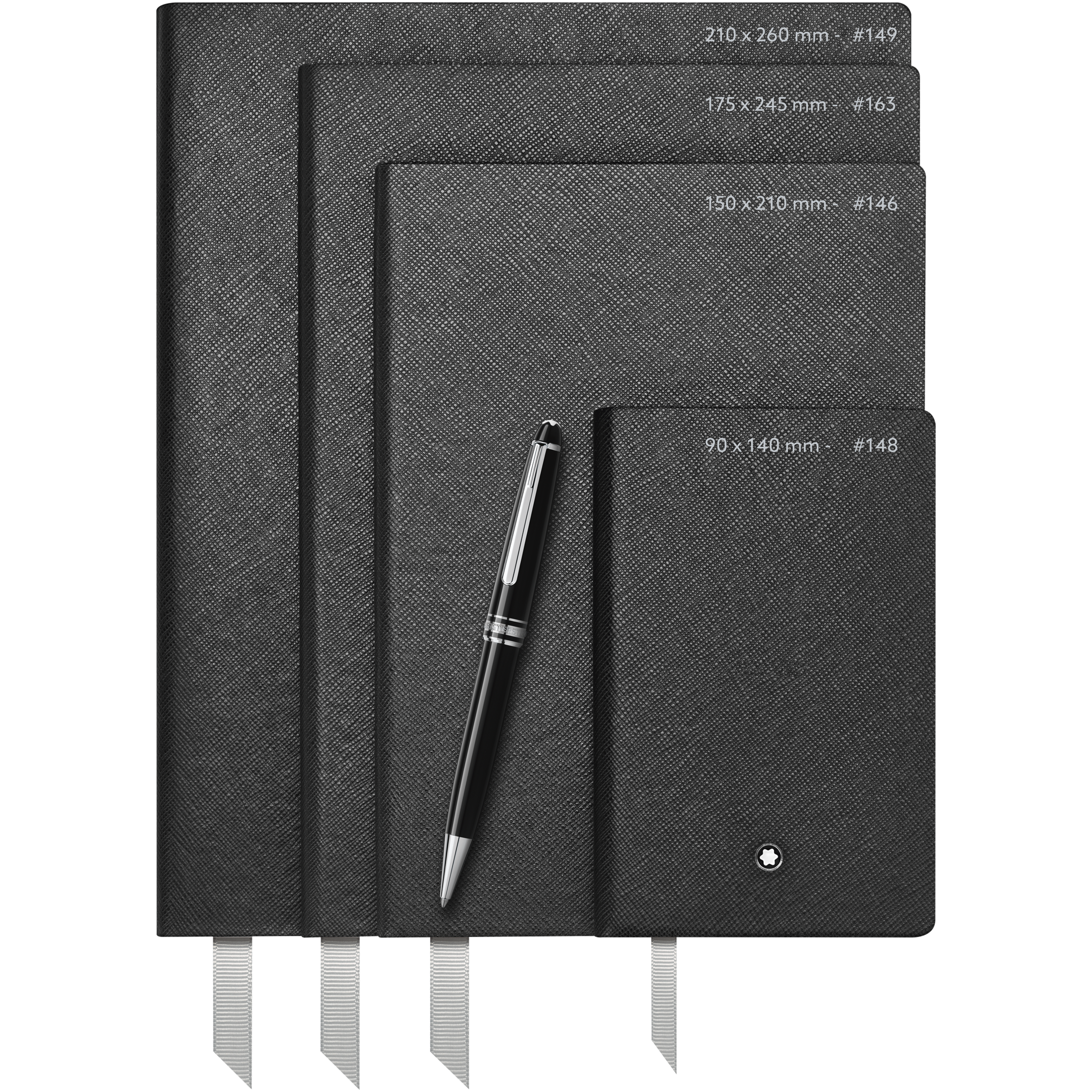 Formatet #146 gjør den praktisk å ha med seg, samtidig som den gir god skriveflate. Den klassiske Montblanc-emblemet pryder forsiden – et symbol på håndverk og tidløs eleganse.
