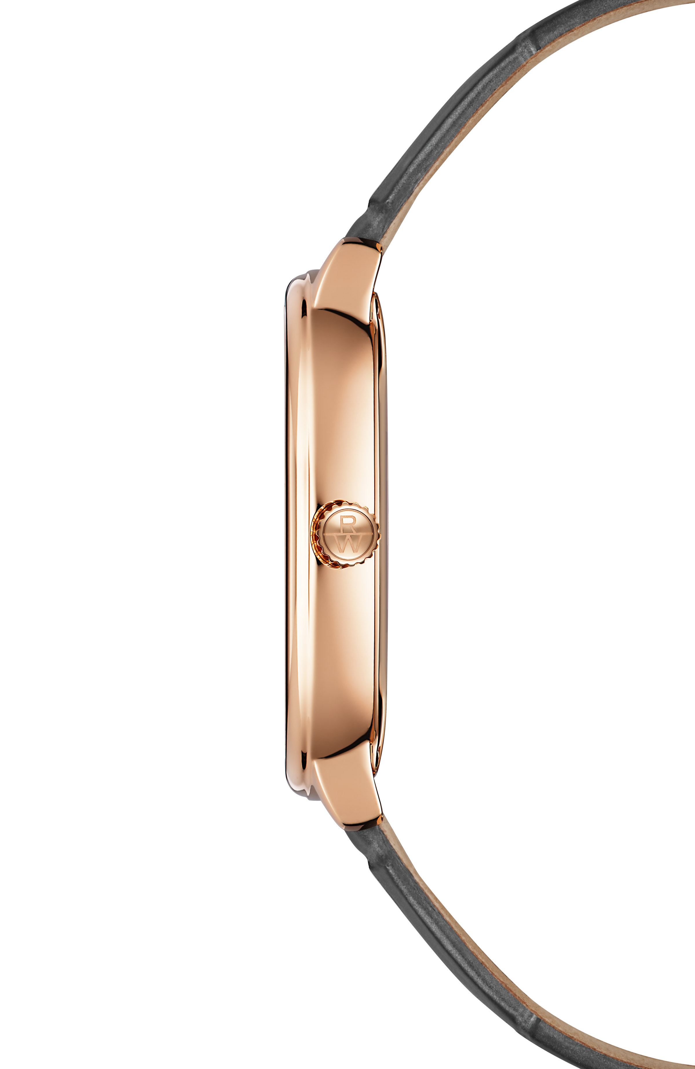 Det mekaniske urverket RW4100, vitner om ekte urmakerkunst og kan beundres gjennom safirglasset på baklokket. Med en gangreserve på 45 timer og en elegant grå kalveskinnsrem, er dette en klokke som kombinerer tradisjon, håndverk og moderne finesse.