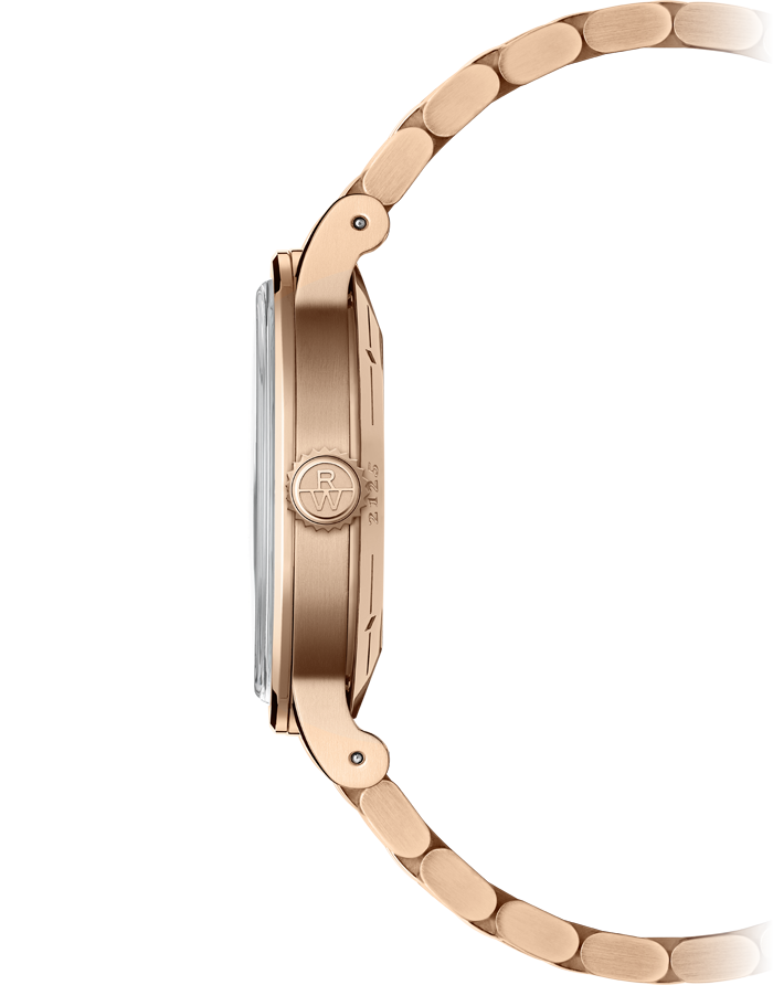 Det svakt buede safirglasset gir klokken et subtilt vintageuttrykk, samtidig som dobble antirefleksbelegg sikrer klar lesbarhet fra alle vinkler. Urkassen på 35 mm er laget i rustfritt stål med roségull PVD-finish, en kombinasjon som gir en varm og elegant kontrast. Gjennom baklokket i safirglass kan du se det selvtrekkende RW4200-urverket, komplett med Raymond Weils karakteristiske W-formede rotor. Med en gangreserve på 41 timer er klokken pålitelig og praktisk i hverdagen.
