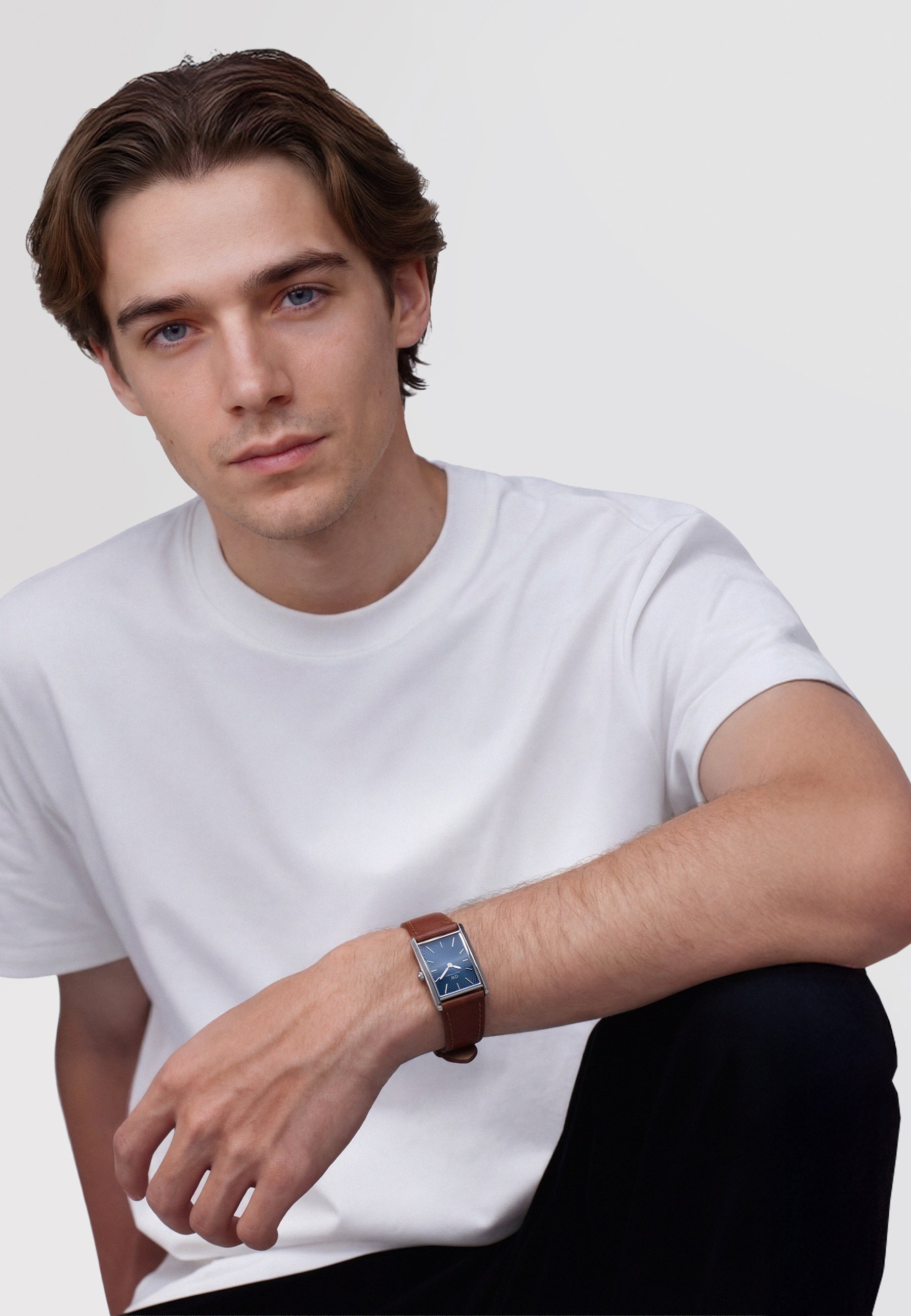 Klokken leveres med en lys brun rem i ekte skinn, som er myk og behagelig på håndleddet og får mer karakter over tid. Lengden på remmen kan justeres fra 140 til 190 mm. Klokken støtter også utskiftbare remmer, slik at stilen enkelt kan tilpasses.