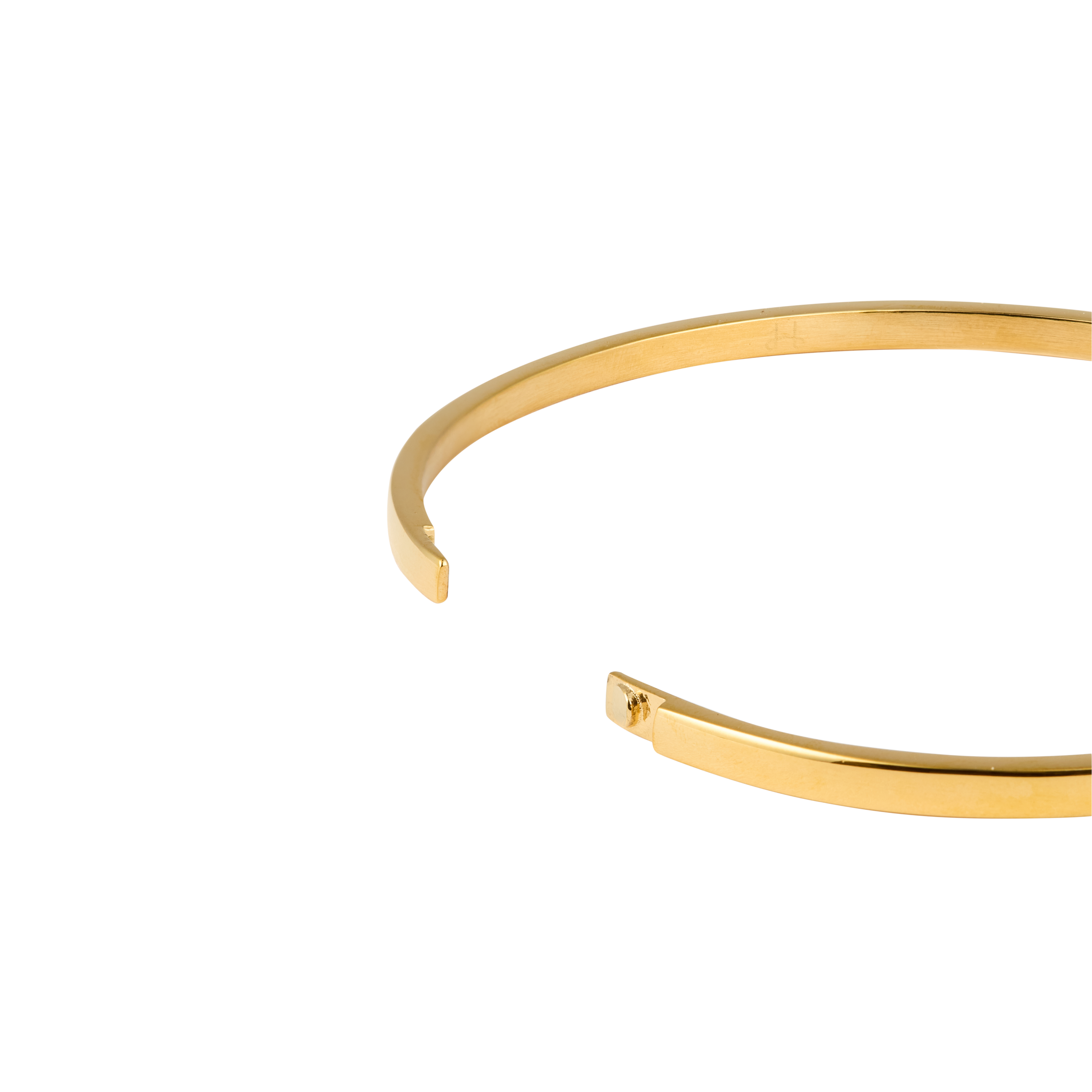 Armbåndet er vannbestandig og utviklet for daglig bruk – et praktisk smykke som tåler både hverdagsbruk og mer aktive dager uten å miste glans. Den faste bangle-formen gjør det enkelt å style alene eller sammen med klokker og andre armbånd.